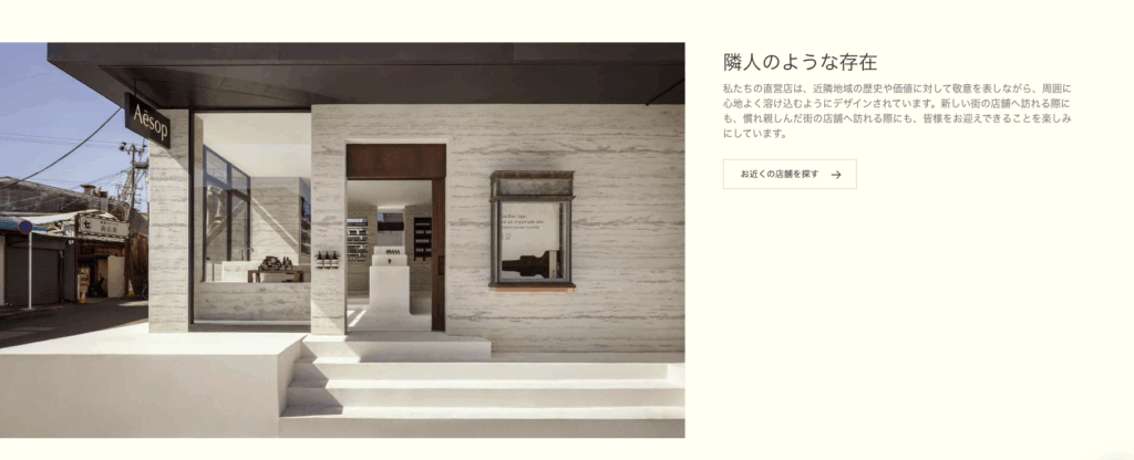 ここでAesopのWebに書いてある、店舗の姿のステートメントがとても納得感のあるものでした。”隣人のような存在”。まさに、商品に詳しいながらも、こちらの状況に共感し、適切な効果を提案し、添えるように商品を営業する。”営業”だけしている企業ではこのAesopには敵わないだろうなーという印象を得ました。