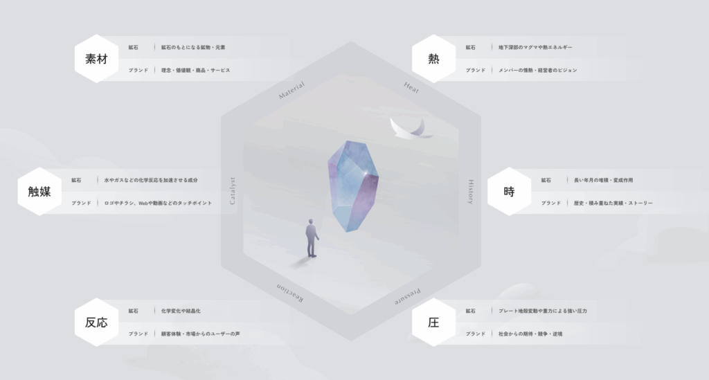 ブランドの作り方は鉱石ができる工程に似ているとHighliteは考えています。