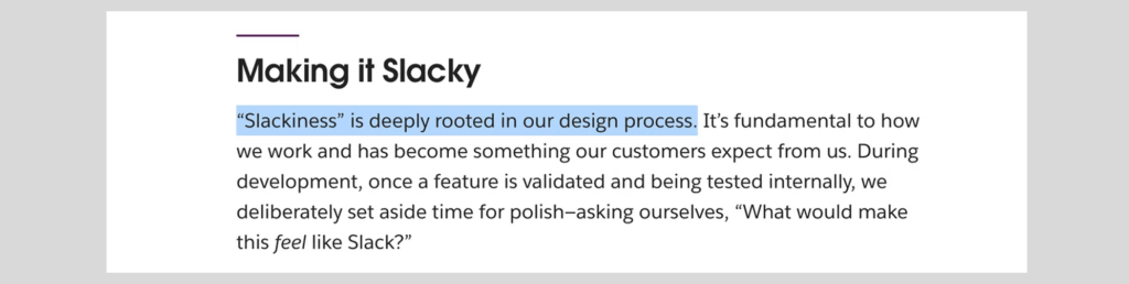 Slackのチームは、これを「Slackらしく」感じさせるにはどうすればいいか?と常に自問し、プロダクト原則に沿った意思決定をしていることがわかります。